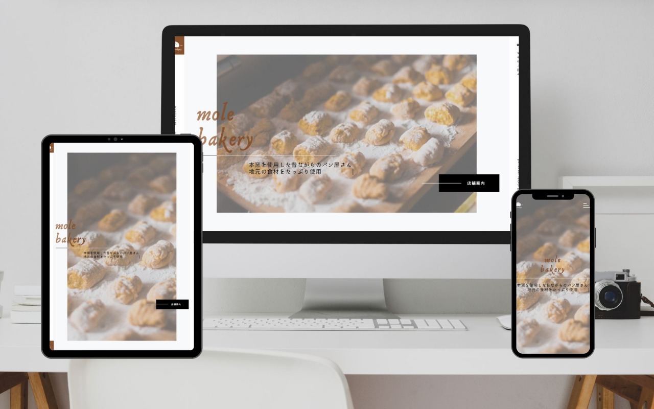 写真背景に加え、お店のフォントロゴを前面に表示したシンプルで視覚性の良いトップページとなっています。